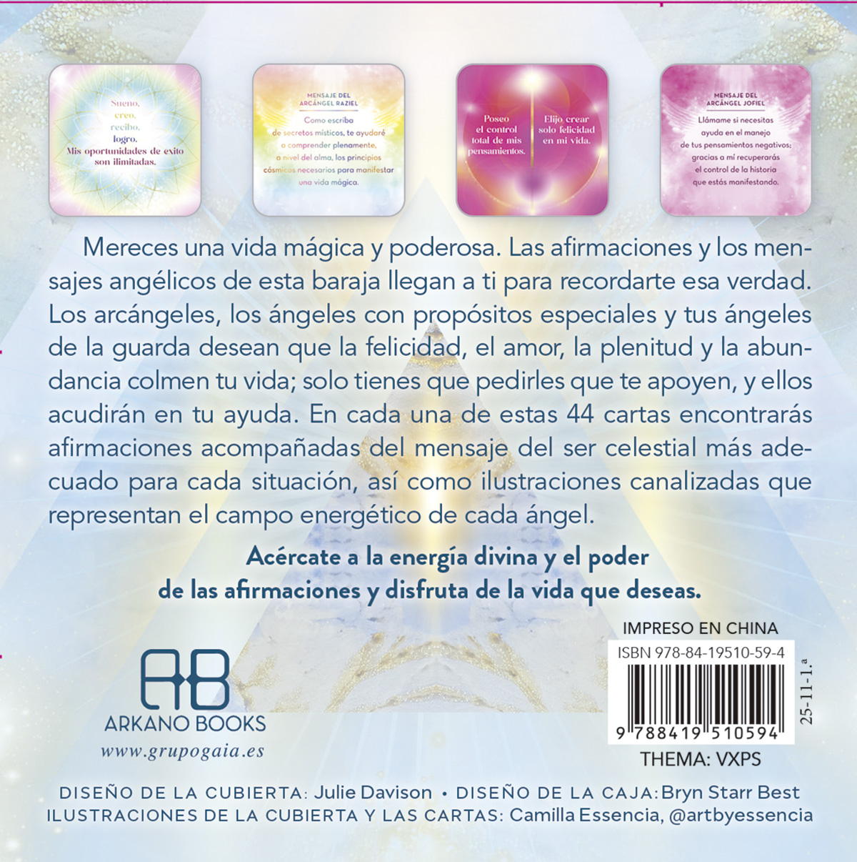Los arcángeles, los ángeles con propósitos especiales y tus ángeles de la guarda desean que la felicidad, el amor, la plenitud y la abundancia colmen tu vida; solo tienes que pedirles que te apoyen, y ellos acudirán en tu ayuda. En cada una de estas 44 cartas encontrarás afirmaciones acompañadas del mensaje del ser celestial más adecuado para cada situación, así como ilustraciones canalizadas que representan el campo energético de cada ángel.