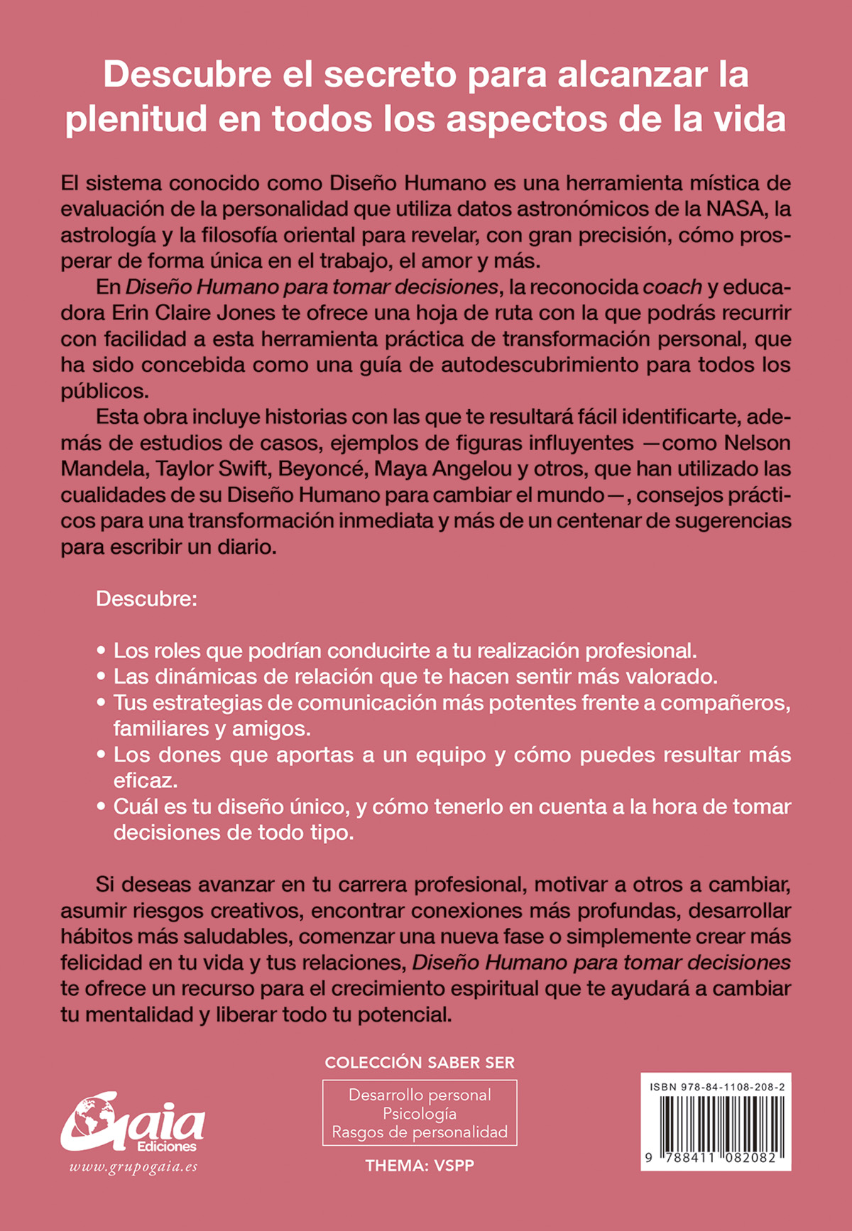 cualidades de su Diseño Humano para cambiar el mundo—, consejos prácticos para una transformación inmediata y más de un centenar de sugerencias para escribir un diario.
