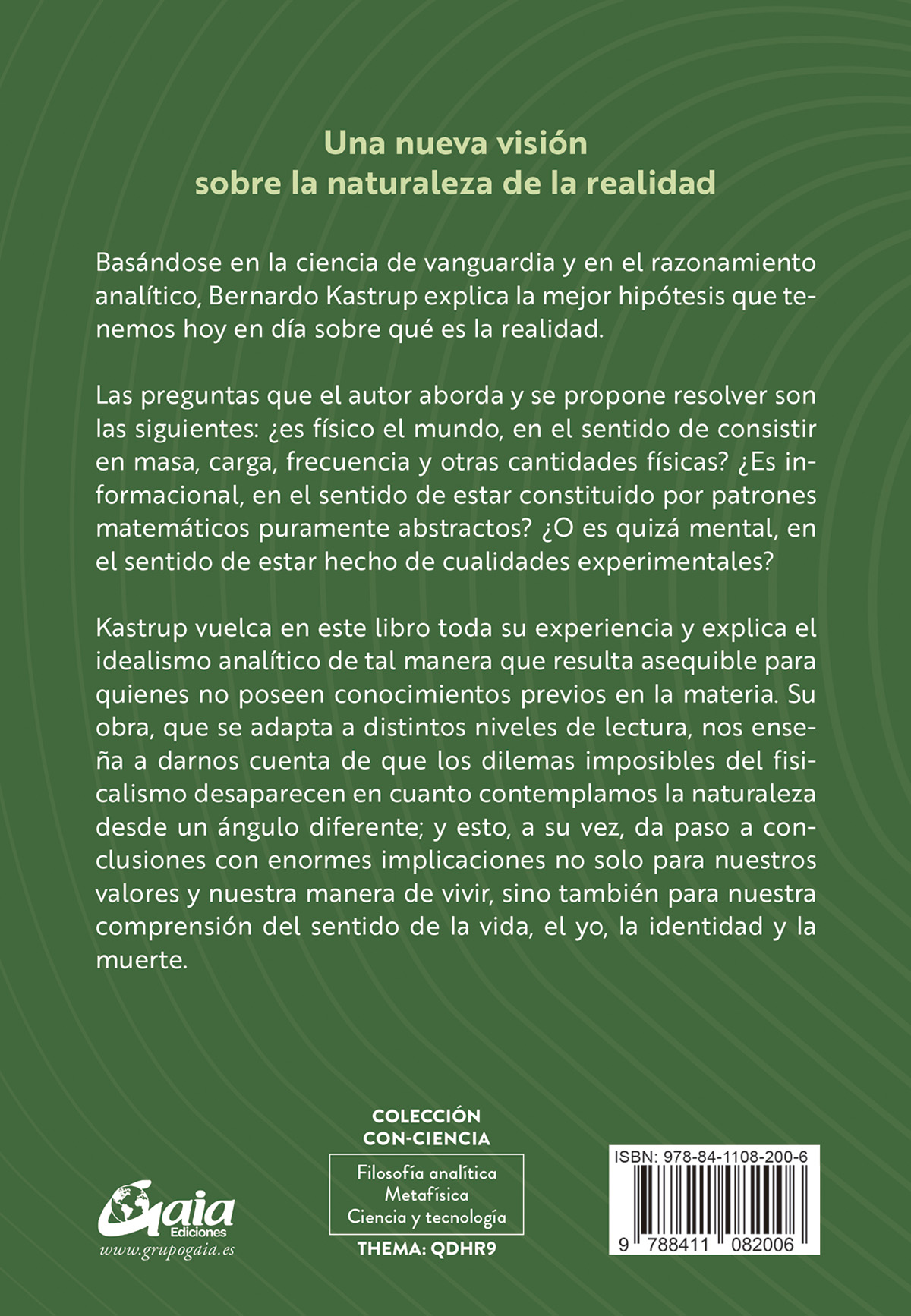 Kastrup vuelca en este libro toda su experiencia y explica el idealismo analítico de tal manera que resulta asequible para quienes no poseen conocimientos previos en la materia. Su obra, que se adapta a distintos niveles de lectura, nos enseña a darnos cuenta de que los dilemas imposibles del fisicalismo desaparecen en cuanto contemplamos la naturaleza desde un ángulo diferente; y esto, a su vez, da paso a conclusiones con enormes implicaciones no solo para nuestros valores y nuestra manera de vivir, sino también para nuestra comprensión del sentido de la vida, el yo, la identidad y la muerte.