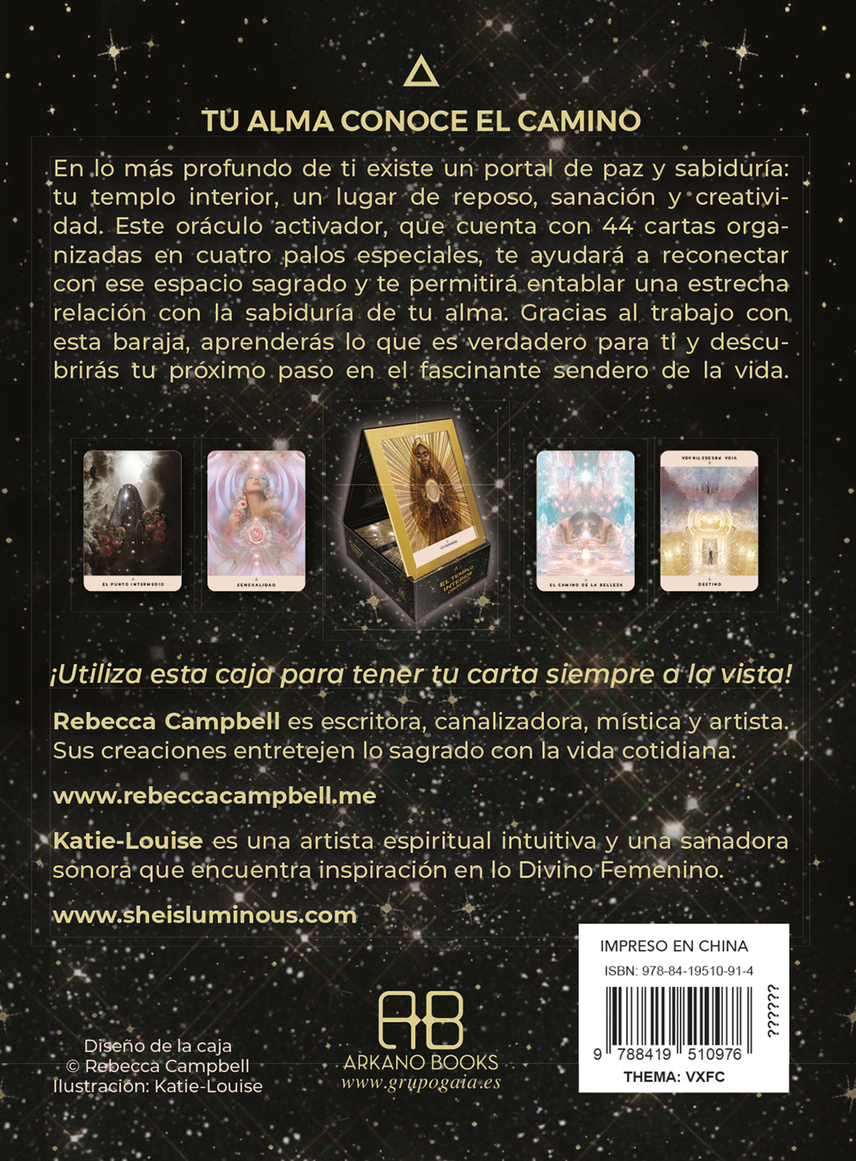 En lo más profundo de ti existe un portal de paz y sabiduría: tu templo interior, un lugar de reposo, sanación y creatividad. Este oráculo activador, que cuenta con 44 cartas organizadas en cuatro palos especiales, te ayudará a reconectar con ese espacio sagrado y te permitirá entablar una estrecha relación con la sabiduría de tu alma. Gracias al trabajo con esta baraja, aprenderás lo que es verdadero para ti y descubrirás tu próximo paso en el fascinante sendero de la vida.