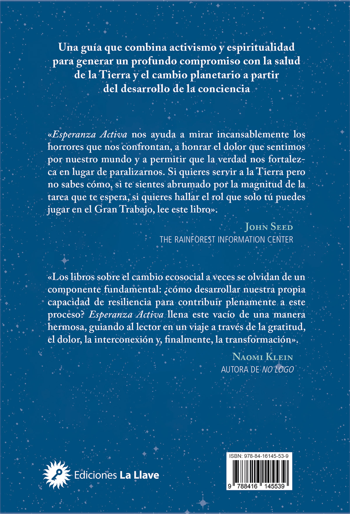 "Los libros sobre la transformación ecosocial a veces se olvidan de un componente fundamental: ¿cómo transformarnos nosotros mismos para ser resilientes y contribuir plenamente a este proceso? Esperanza Activa llena este vacío de una manera hermosa, guiando al lector en un viaje a través de la gratitud, el dolor, la interconexión y, finalmente, la transformación.