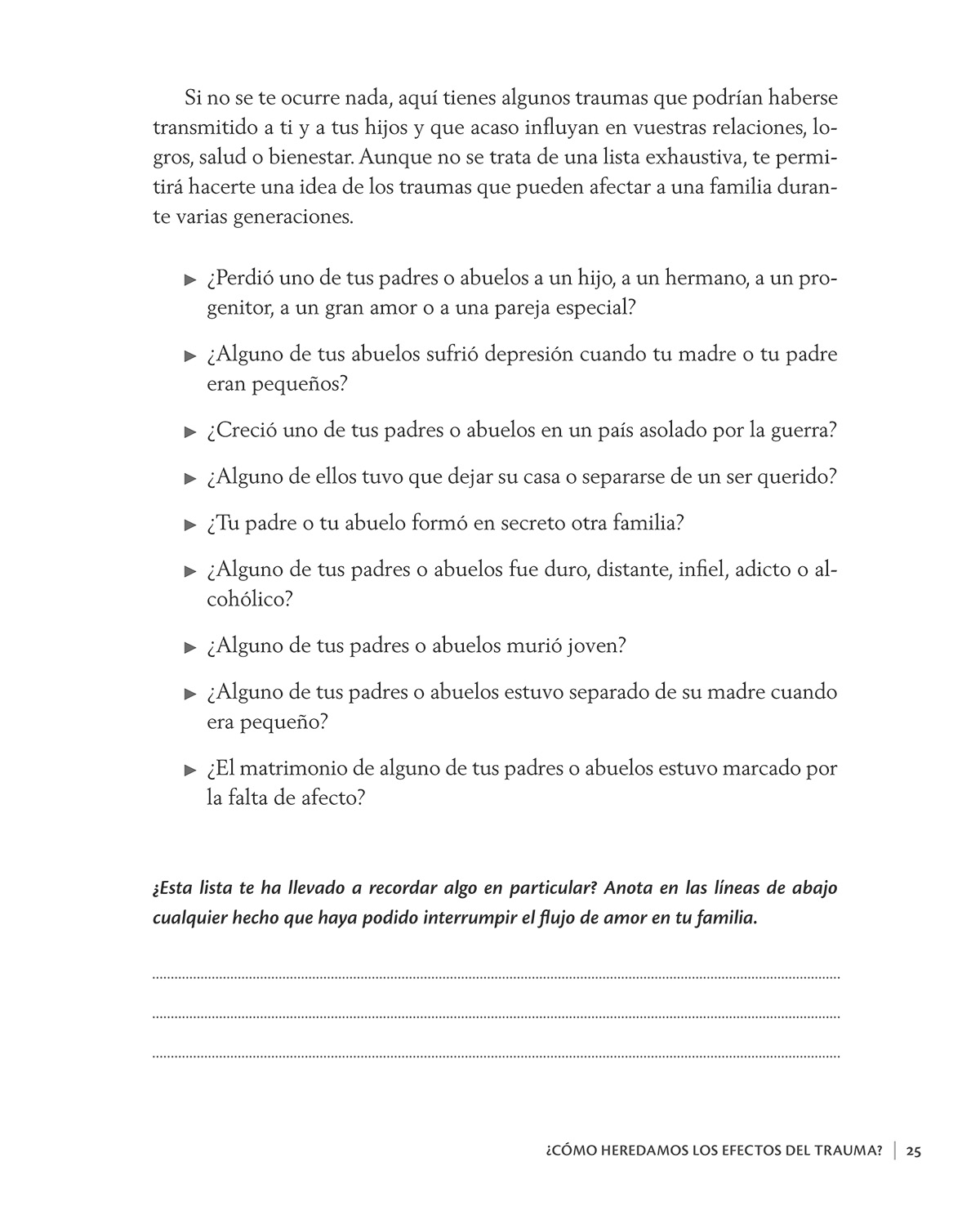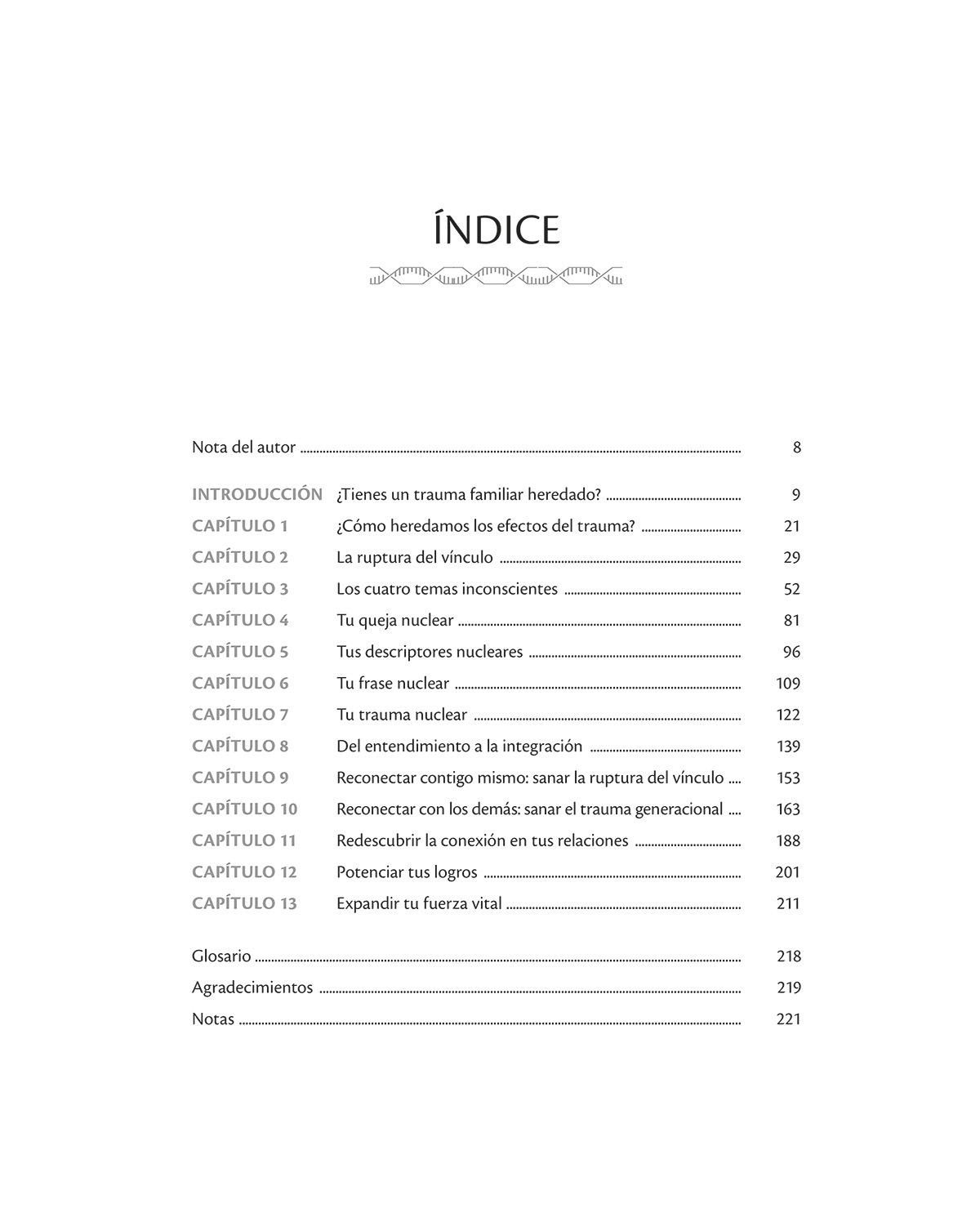 A través de una serie de actividades, indicaciones y prácticas, es posible que descubras que las aflicciones que has padecido durante toda tu vida no son, en realidad, más que síntomas de un legado familiar oculto. Esta obra se convertirá en una experiencia transformadora que te enseñará a sanar el pasado, reconectar contigo mismo y recuperar tu vida, tu salud y tu vitalidad.