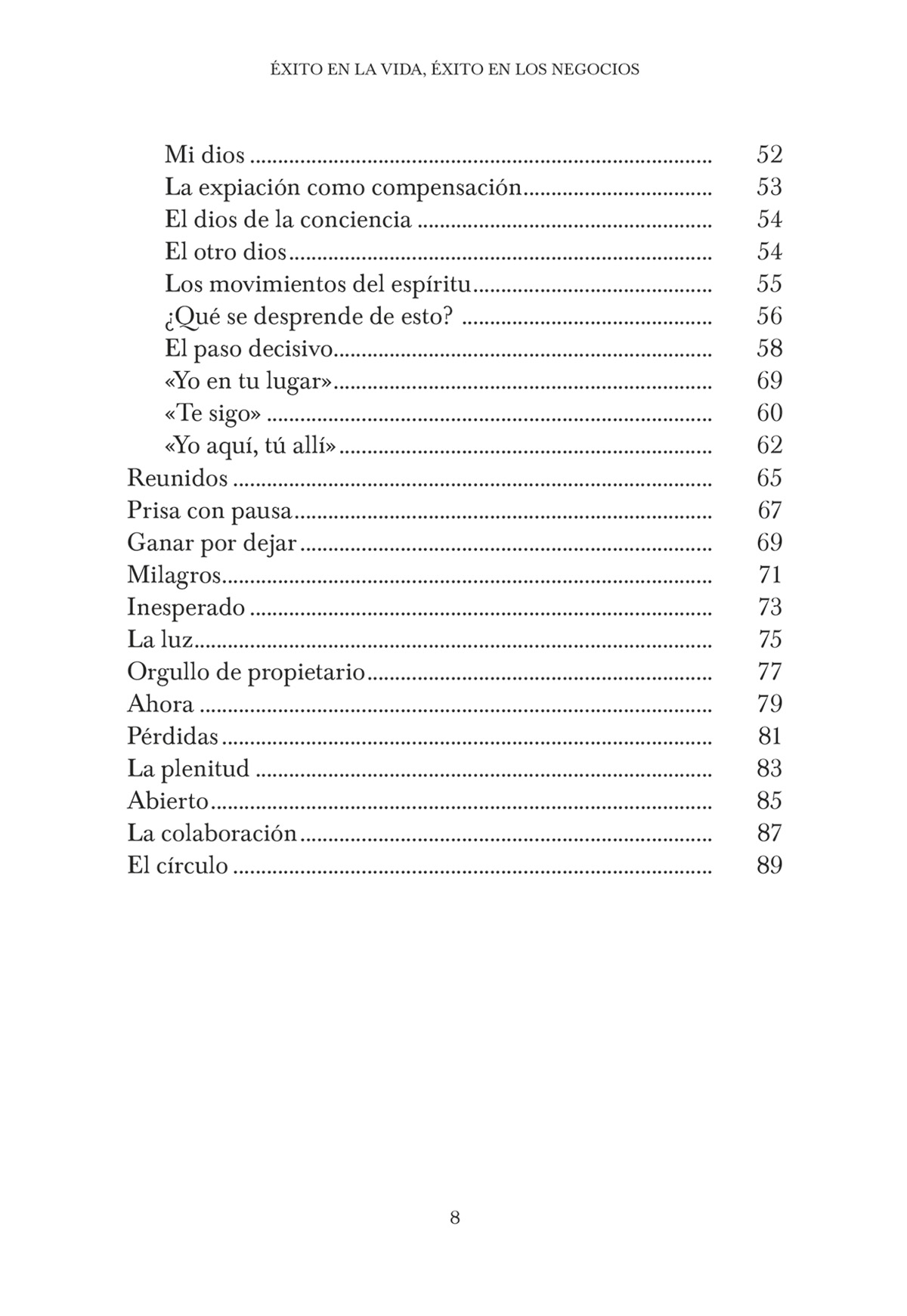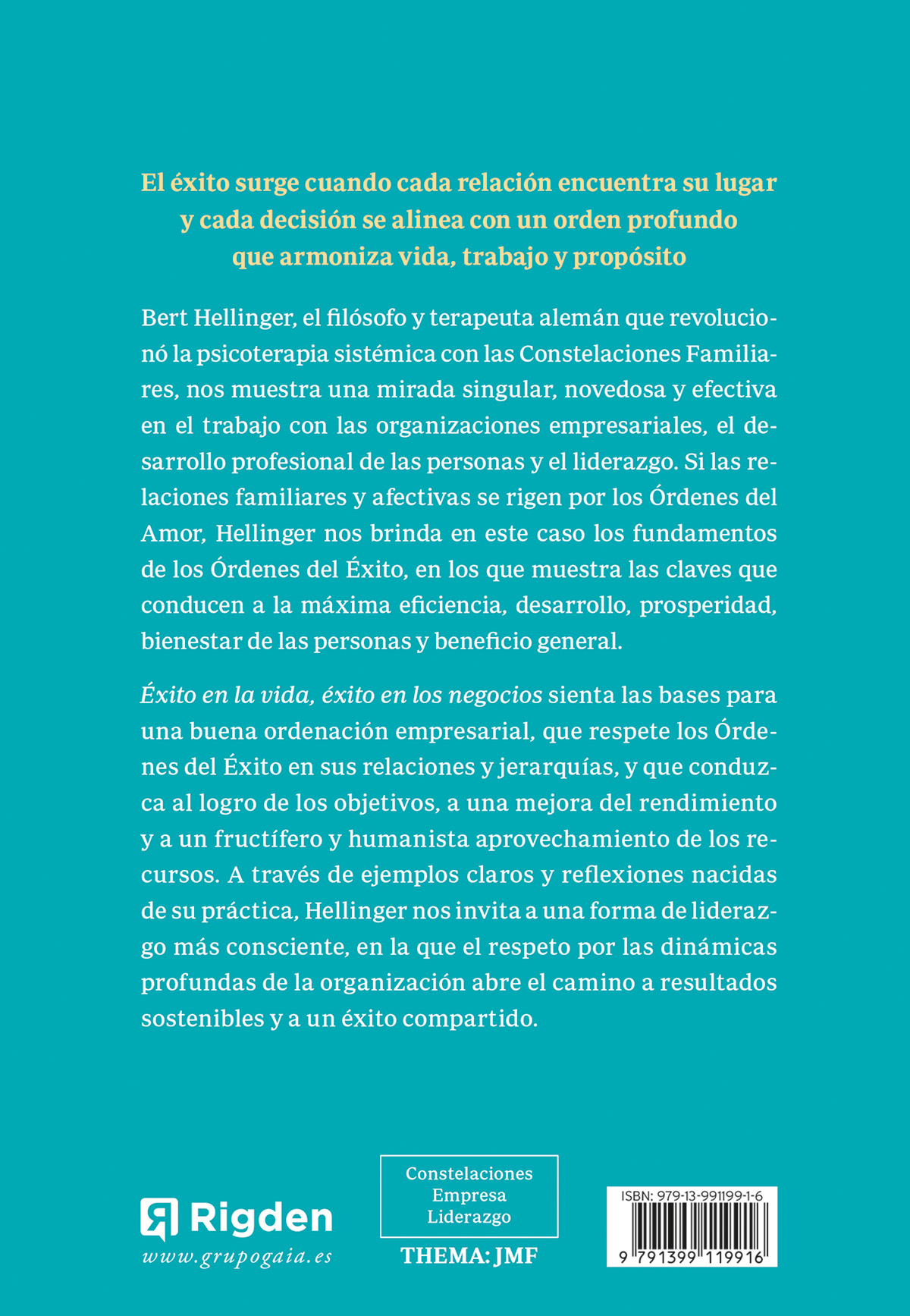 Éxito en la vida, éxito en los negocios sienta las bases para una buena ordenación empresarial, que respete los Órdenes del Éxito en sus relaciones y jerarquías, y que conduzca al logro de los objetivos, a una mejora del rendimiento y a un fructífero y humanista aprovechamiento de los recursos. A través de ejemplos claros y reflexiones nacidas de su práctica, Hellinger nos invita a una forma de liderazgo más consciente, en la que el respeto por las dinámicas profundas de la organización abre el camino a resultados sostenibles y a un éxito compartido.