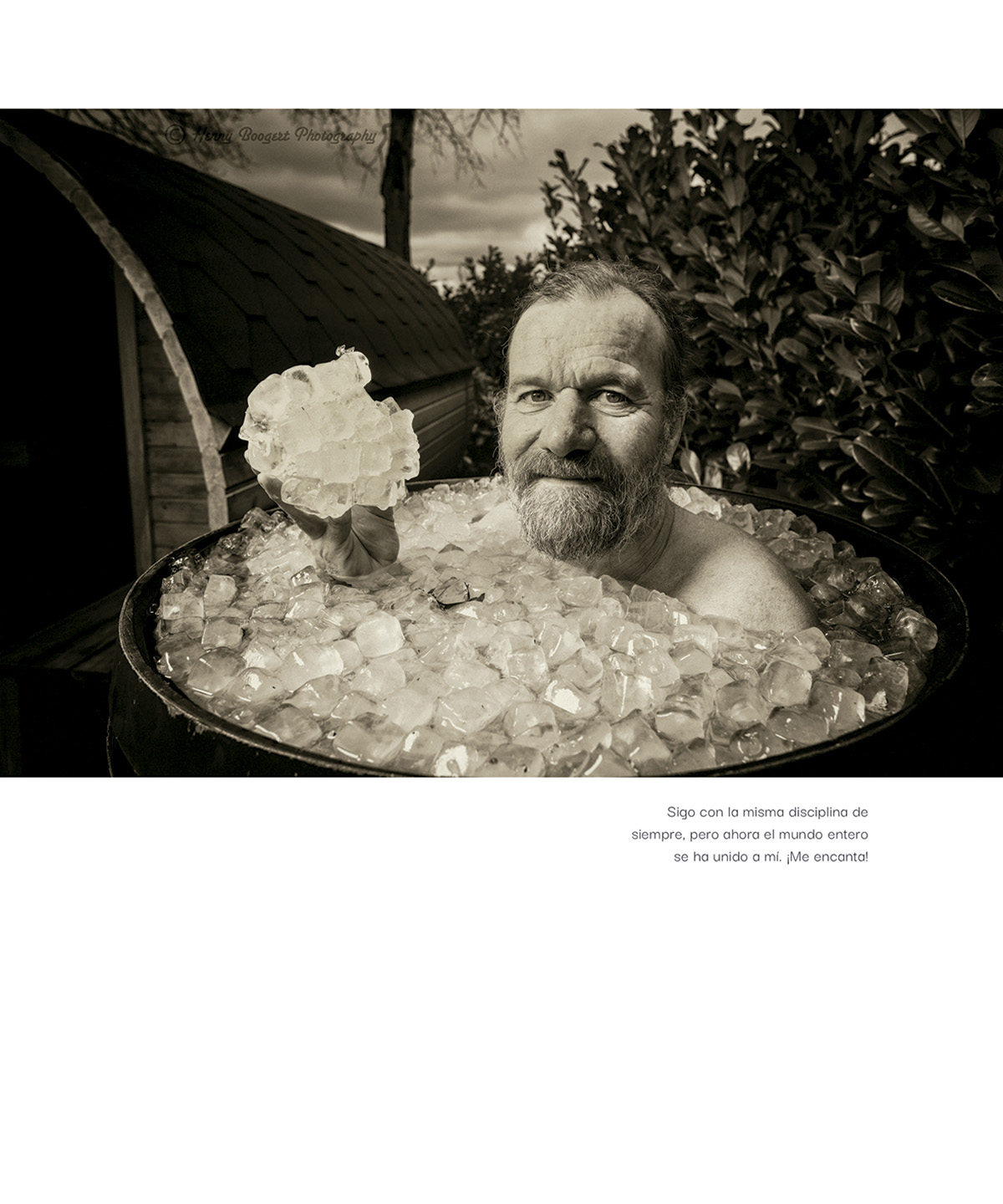 Las imágenes inmersivas del fotógrafo Henny Boogert, viejo amigo y cronista del autor, ofrecen una visión sin precedentes de los acontecimientos clave de la vida de Hof, y reflejan la poesía, las historias y las lecciones adquiridas a lo largo de una trayectoria increíble dedicada a superar límites y desafiar expectativas.