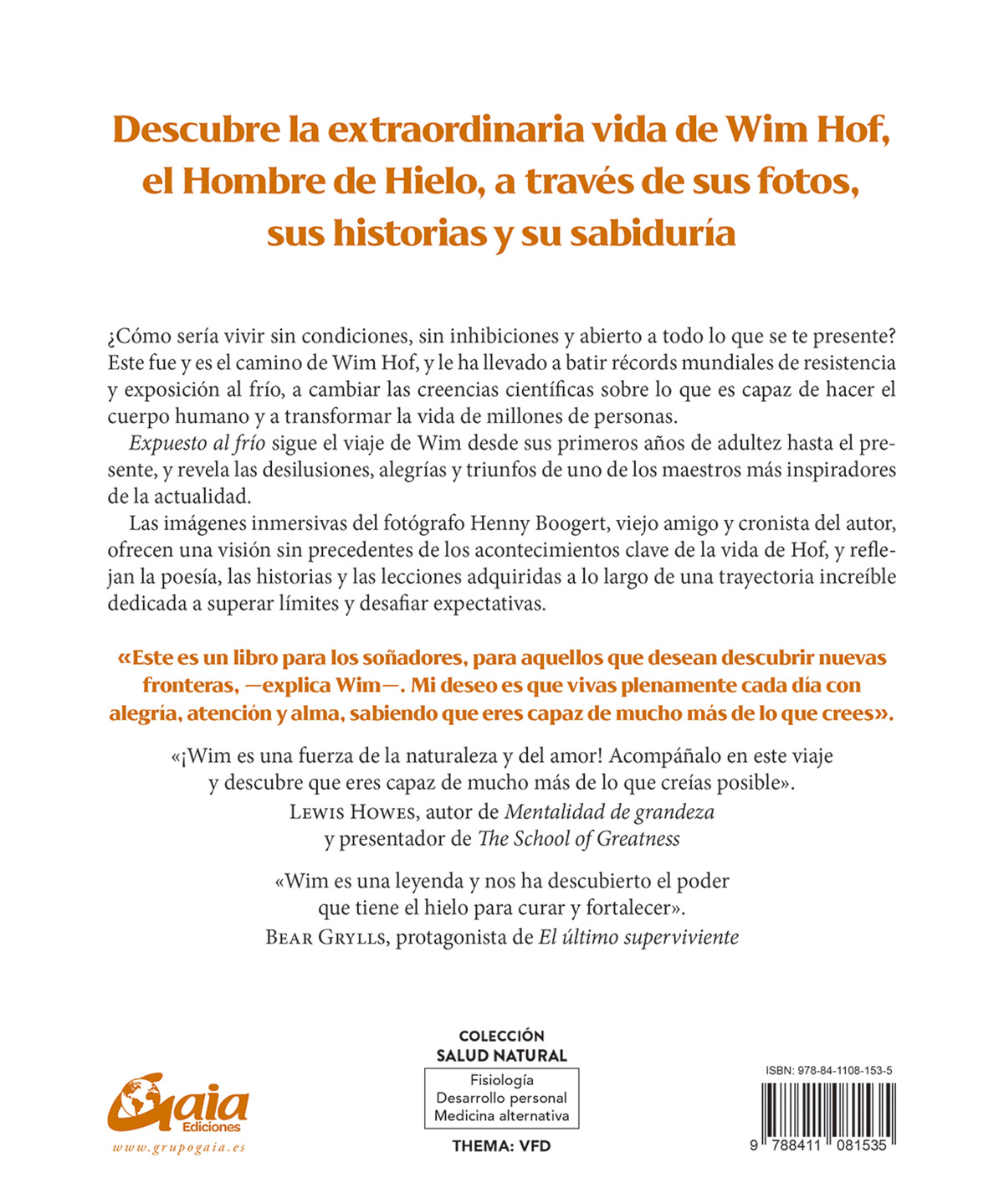 natural del frío, Wim tiene la misión de compartir sus descubrimientos con el mundo. Es autor de El método Wim Hof, bestseller internacional publicado por Gaia Ediciones.