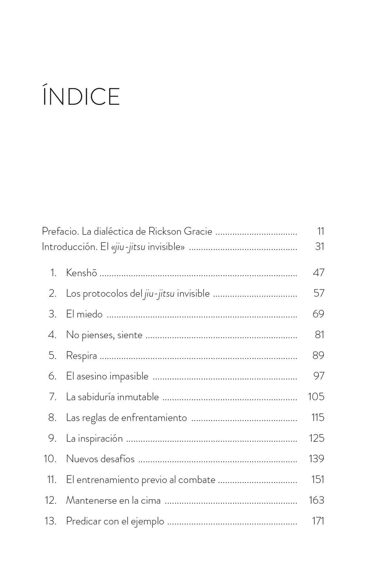 Rickson Gracie, figura mítica de los combates y miembro legendario de la «primera familia de las artes marciales», es considerado el padrino de lo que hoy conocemos como artes marciales mixtas. Aunque las tres décadas de dominio absoluto de Rickson en el jiu-jitsu son asombrosas, aún más sorprendente resultan la serenidad y la profundidad que encierra su visión del combate. Para él, el jiu-jitsu es una metáfora de la vida, una profunda filosofía en la que se apoya para afrontar y evaluar los retos y preservar su felicidad y equilibrio mental.