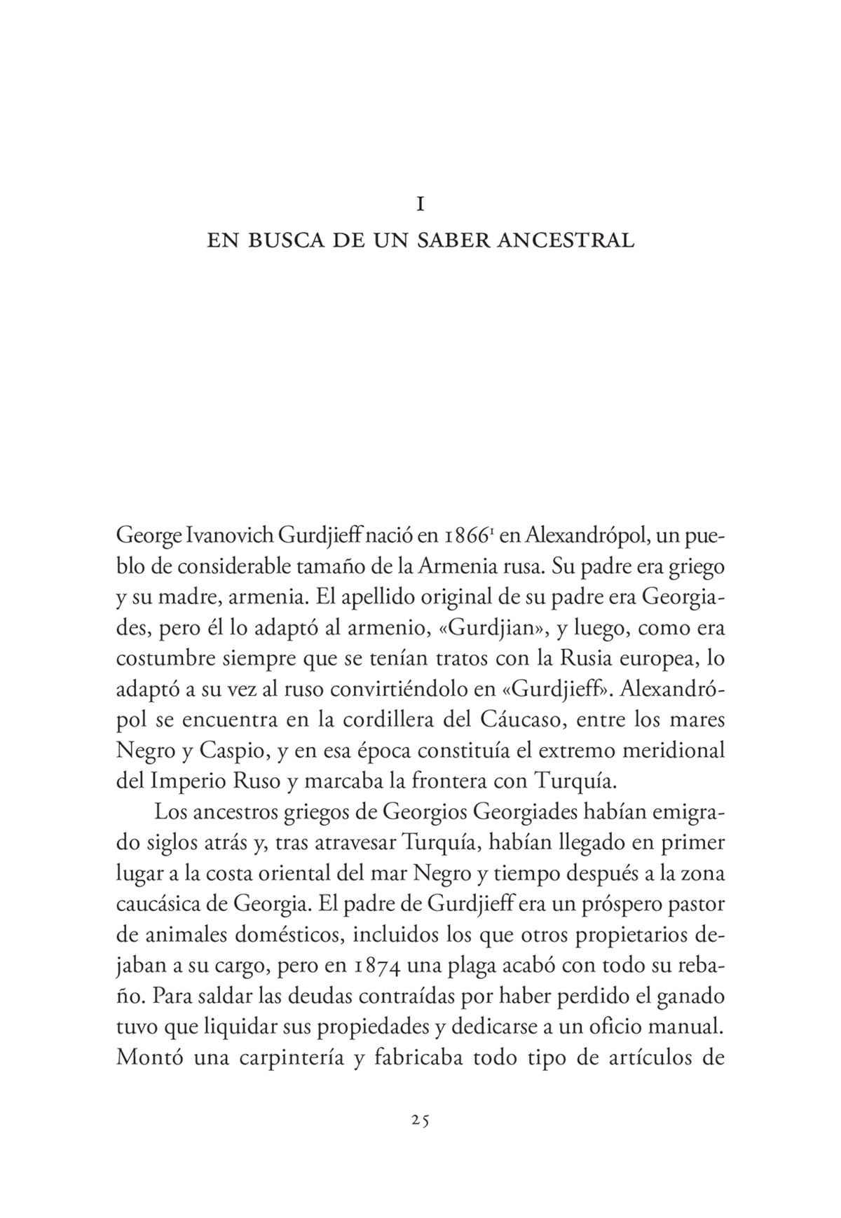 Desde los márgenes de la historia oficial y de las tradiciones espirituales, a comienzos del siglo xx irrumpió en Occidente la figura enigmática de G. I. Gurdjieff, portador de una enseñanza destinada a transformar la consciencia humana. Lejos de la fe ciega y de las lecturas literales, el Cuarto Camino se presenta como una vía esotérica rigurosa, fundada en la experiencia directa y en el desarrollo del ser. Su objetivo no es acumular saber, sino provocar un cambio interior radical: el tránsito del hombre mecánico al ser humano consciente.