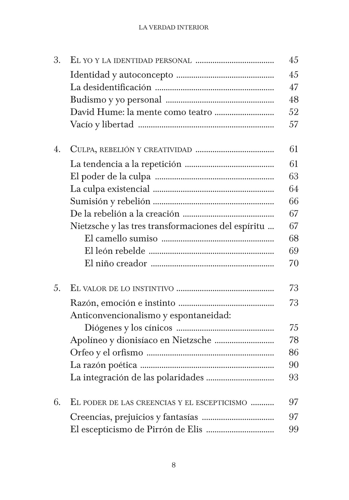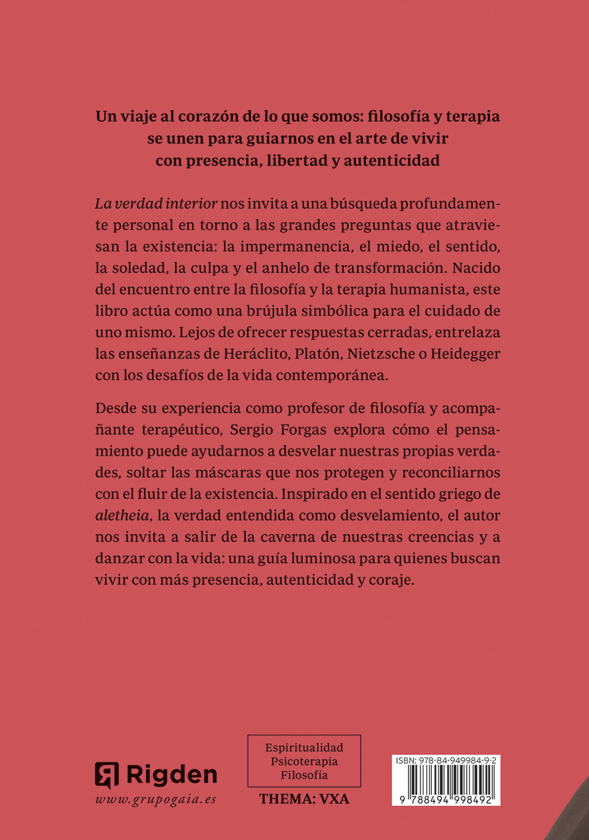 La verdad interior nos invita a una búsqueda profundamente personal en torno a las grandes preguntas que atraviesan la existencia: la impermanencia, el miedo, el sentido, la soledad, la culpa y el anhelo de transformación. Nacido del encuentro entre la filosofía y la terapia humanista, este libro actúa como una brújula simbólica para el cuidado de uno mismo. Lejos de ofrecer respuestas cerradas, entrelaza las enseñanzas de Heráclito, Platón, Nietzsche o Heidegger con los desafíos de la vida contemporánea.