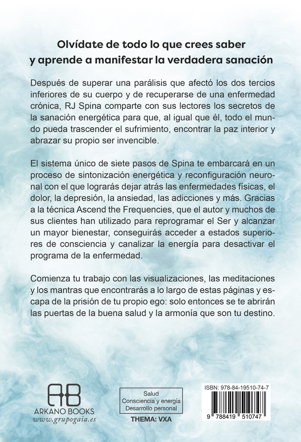 El sistema único de siete pasos de Spina te embarcará en un proceso de sintonización energética y reconfiguración neuronal con el que lograrás dejar atrás las enfermedades físicas, el dolor, la depresión, la ansiedad, las adicciones y más. Gracias a la técnica Ascend the Frequencies, que el autor y muchos de sus clientes han utilizado para reprogramar el Ser y alcanzar un mayor bienestar, conseguirás acceder a estados superiores de consciencia y canalizar la energía para desactivar el programa de la enfermedad.