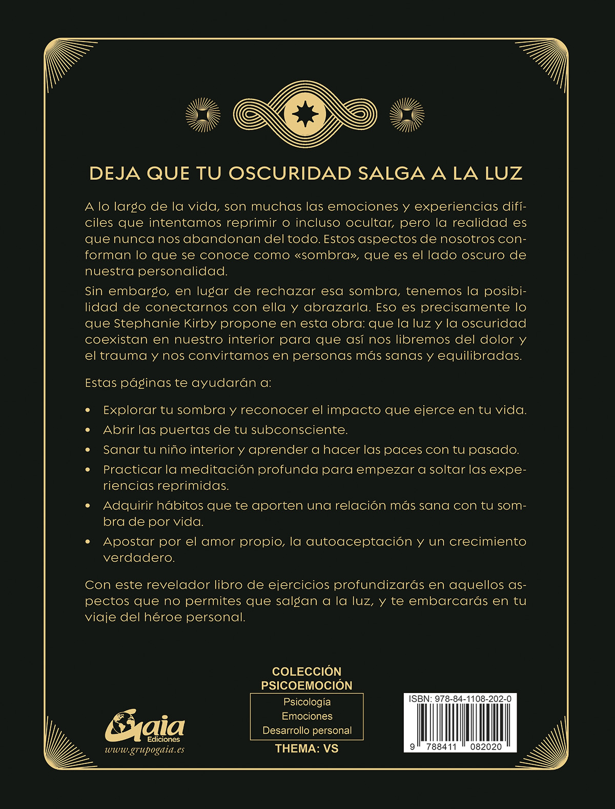 Sin embargo, en lugar de rechazar esa sombra, tenemos la posibilidad de conectarnos con ella y abrazarla. Eso es precisamente lo que Stephanie Kirby propone en esta obra: que la luz y la oscuridad coexistan en nuestro interior para que así nos libremos del dolor y el trauma y nos convirtamos en personas más sanas y equilibradas.